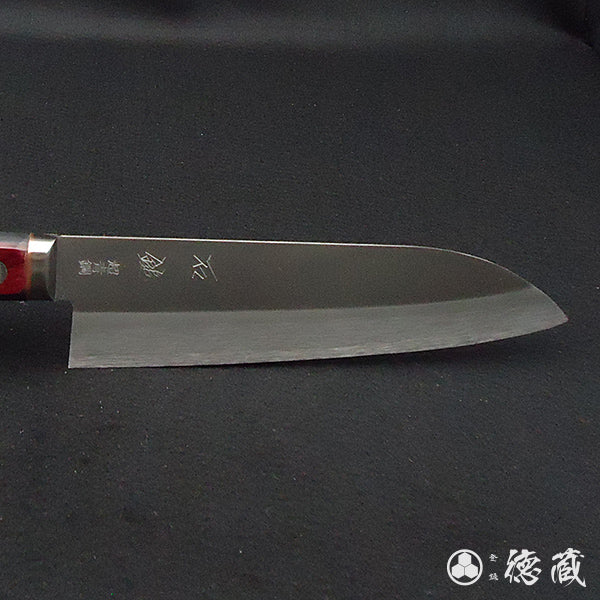 蓝色 S 抛光三德刀红黑手柄